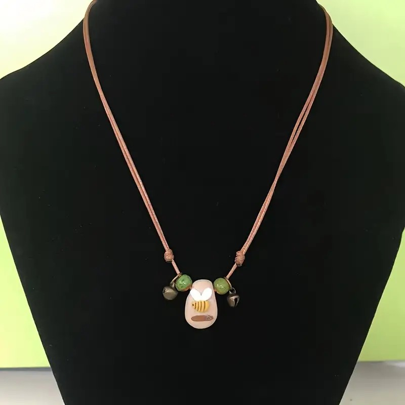 COLAR EM PEDRA NATURAL PINTADA Á MÃO